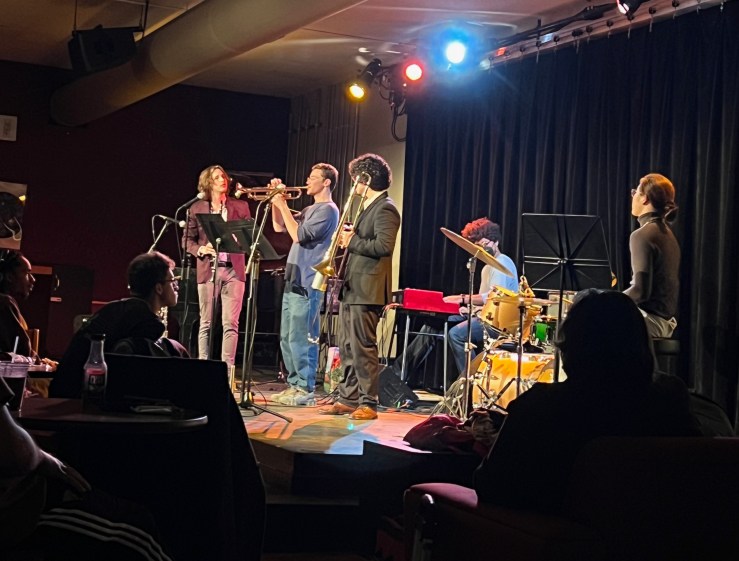 A sold out Cat in the Cream hosted the first Jazz Forum of the semester on February 17th at noon. Some audience members sat in chairs, some chose the floor, while others were forced to stand, packed in like sardines in anticipation of the show.