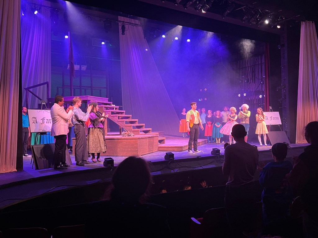As the overture began the orchestra, under the direction of Raphael Jiménez, immediately brought the light of spring to the hall without flipping a switch. A fast and bright piece, the overture was owned by the violins and flute swelling and falling, mirroring the plot of the story that was about to be told. The curtain rose to reveal the cast standing tall dressed in bright shirts and skirts as they welcomed everyone present to Westphalia. The lighting and clever stage design by Michael Grube created a realistic atmosphere that allowed for the story to come to life.
