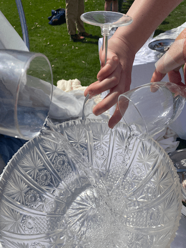 OINC director Dr. Steven Kemper described the performance as “more of a happening than a concert,” and a happening it was. The park was abuzz with college students, Oberlin residents, and out-of-towners alike, some traveling across multiple states. Observers stood around the circular performance space next to the bandstand. Some — myself included — were lucky enough to get a front row seat on the grass at the edge of the circle. In the time before the concert began, the Solar Sounders scattered about generated spacey pulses, setting the tone for the imminent eclipse. The organizers held a so-called “participatory water ritual,” in which concertgoers took plastic glasses of water from a table by the bandstand and walked them to the outer edge of the circle to pour the contents into collective bowls. As we walked, my friends and I were instructed to focus on what we want our lives to be like after the eclipse. It felt a bit silly at first, but I was surprised by how at peace it made me feel.