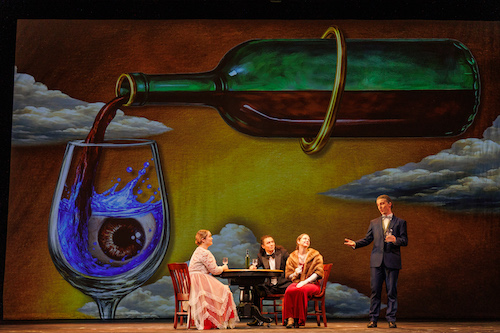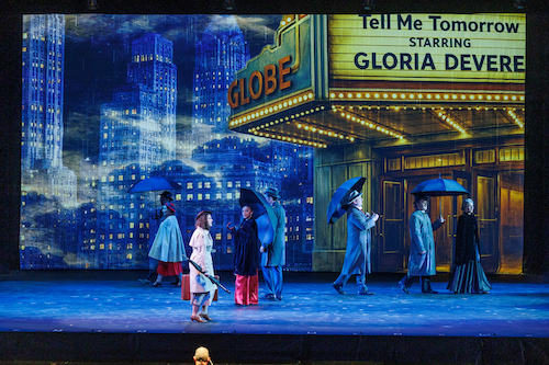 Later the Same Evening follows an ensemble cast in 1920s New York City as they prepare to and eventually attend an imaginary opera, See You Tomorrow. Campbell’s story, which he says “celebrates the serendipity of random human connections,” was inspired by scenes and figures from five paintings by renowned American realist painter Edward Hopper. Projected in rotation with a few original works curated by Projection Designer Brittany Powell Blascke, these five paintings featured prominently behind the cast throughout the show.